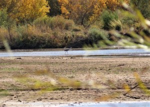 thirty feet away on one of the many long, narrow islands the shallow river had created. Separated by ephemeral streams, the rills and rivulets looked like fingers stretching, searching for the unimpeded flow. I pushed through the tamarisk blind onto a narrow slip of sand, then stopped. Holding my breath, I quickly but quietly doffed my satchel and sat down slow-motion slowly so as not to startle my grey-feathered friend. The crane turned away with mock indifference and headed for the far west bank. I watched, entranced, held captive by the moment.
