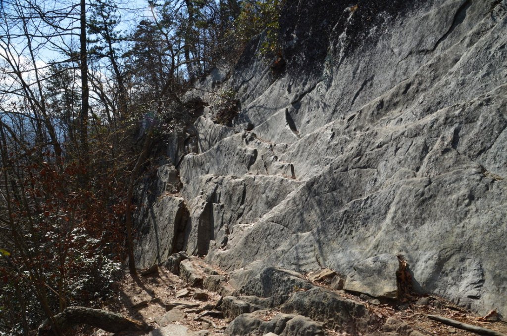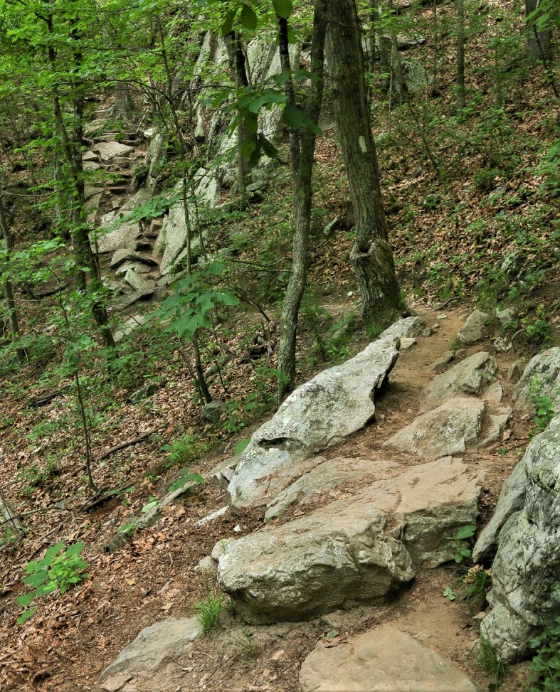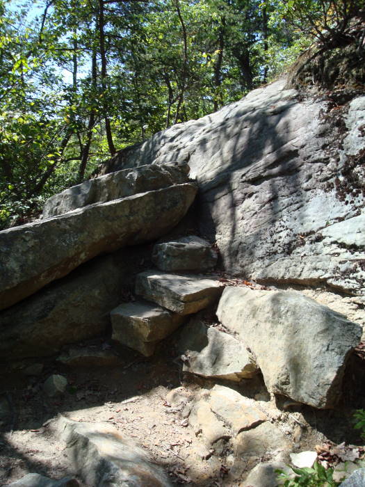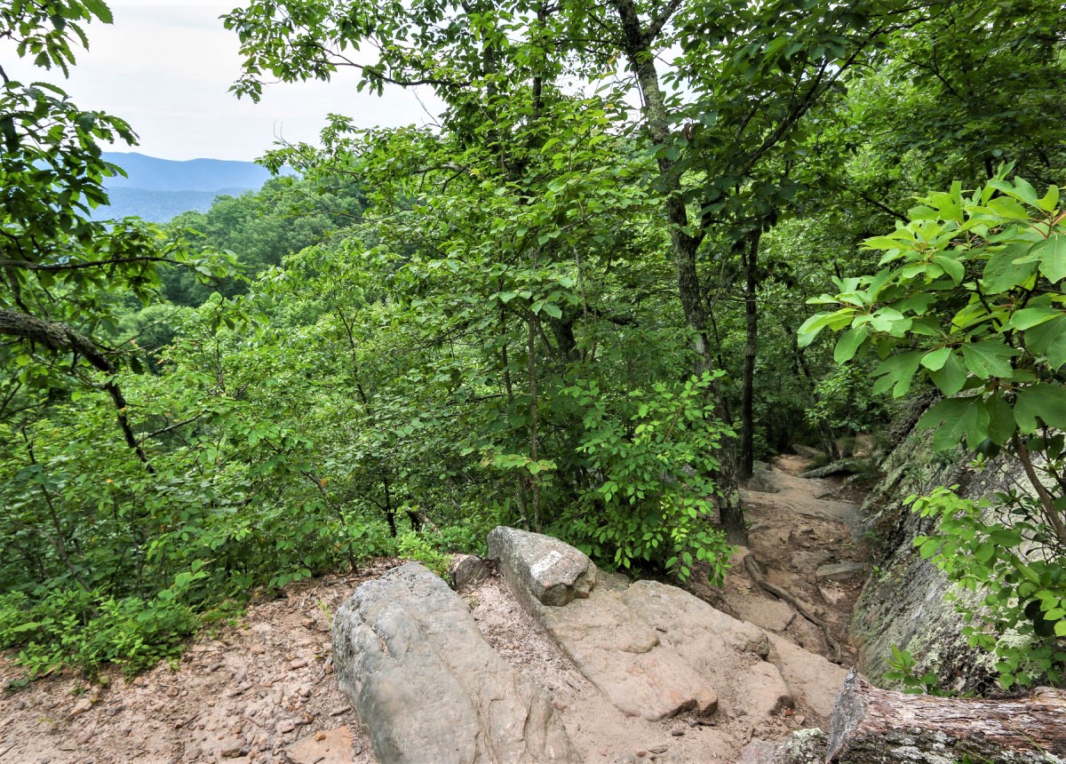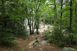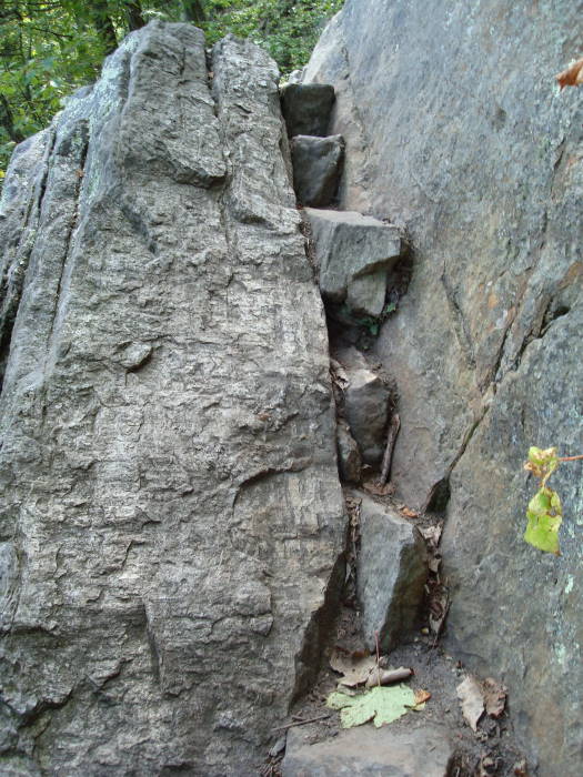 Because of recent rain, this section of the Appalachian Trail included slick stone slabs, narrow wet ledges, and even dripping iron rungs affixed to the rocks to aid with the ascent. My forty pound pack weighed heavier on my back; determined still, I trudged up stone stairs, tripped over snaking roots, wiped the sweat from my forehead and neck.