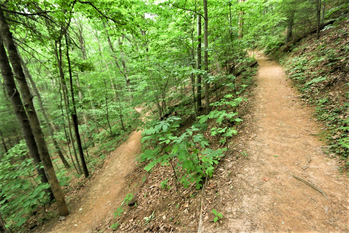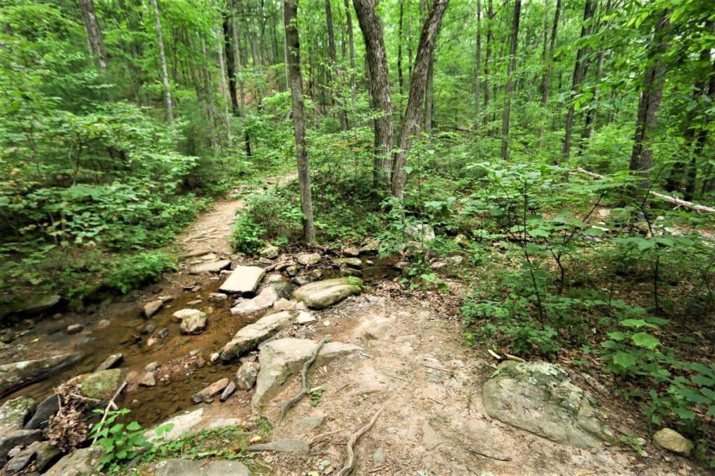 On my way up, I passed several streams, healthy waters trickling, gathering, running down the valley cleft. The trail along Catawba Creek soon ascended higher, meandering away from the stream to follow a pine needle, leaf-littered path under a canopy of deciduous trees mingled with a community of conifers.